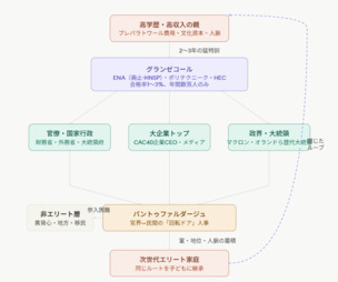 フランスには、グランゼコール(ENA、ポリテクニーク、HECなど)という超難関エリート養成校がある。大統領も首相も官僚も大企業トップも、その多くがここの出身だ。選抜は厳しいが、一度入れば「正しい知識を持つ者として国家を設計する権利がある」という意識が宿る。これはトップダウンで美しいルールを作り、世界に輸出するDNAだ。EU指令の書き方、気候変動規範、人権フレームワーク——複雑な条文の中に解釈余地を残しながら、実質的に自国(とフランス主導のEU)が有利になる基準を世界標準化していく。問題は、この設計が「美しすぎる」ことだ。一度完成すると現実との乖離を認めにくくなる。「設計が悪いのではなく、世界が間違っている」——その思考回路が、茹でガエルを加速させる。